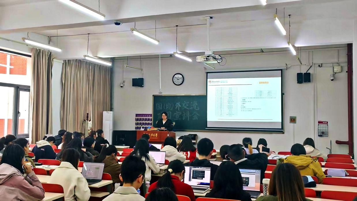 /涉外法治学院联合国际合作与交流处在昌平校区端升楼104举办赴国(境)外交流项目宣讲会。活动面向学校“涉外法治人才培养”战略需求,百余名本科、研究生现场参与。宣讲会由国际合作与交流处项目科科长张雨晨主讲。
